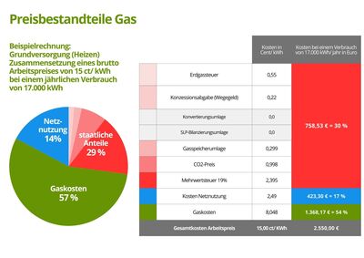 Die Gaskosten beinhalten neben den Kosten für die Gasbeschaffung alle anfallenden Aufwendungen des Lieferanten